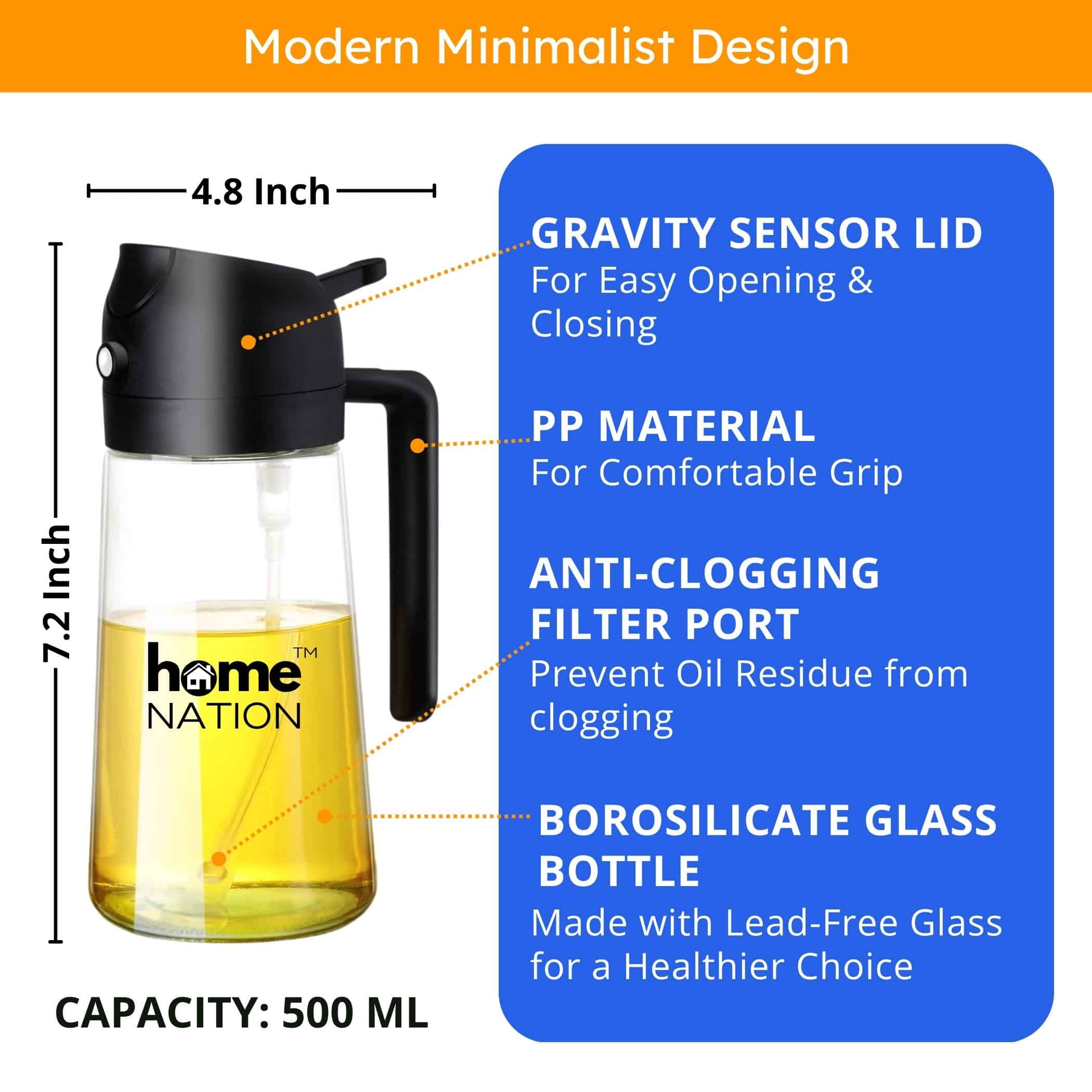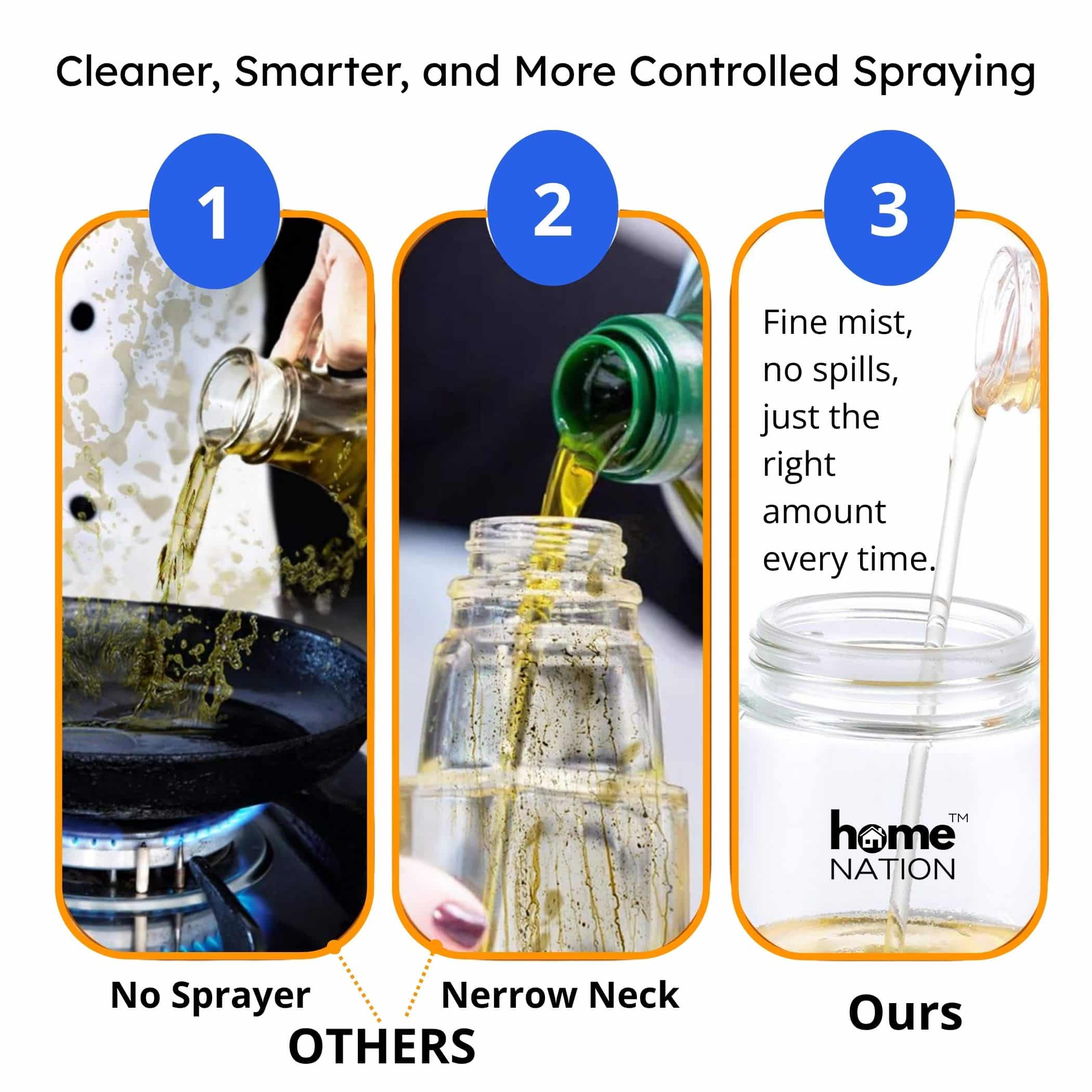 Perfect for every modern kitchen, this glass oil sprayer and dispenser bottle helps you control oil usage, reduce waste, and cook healthier meals effortlessly.