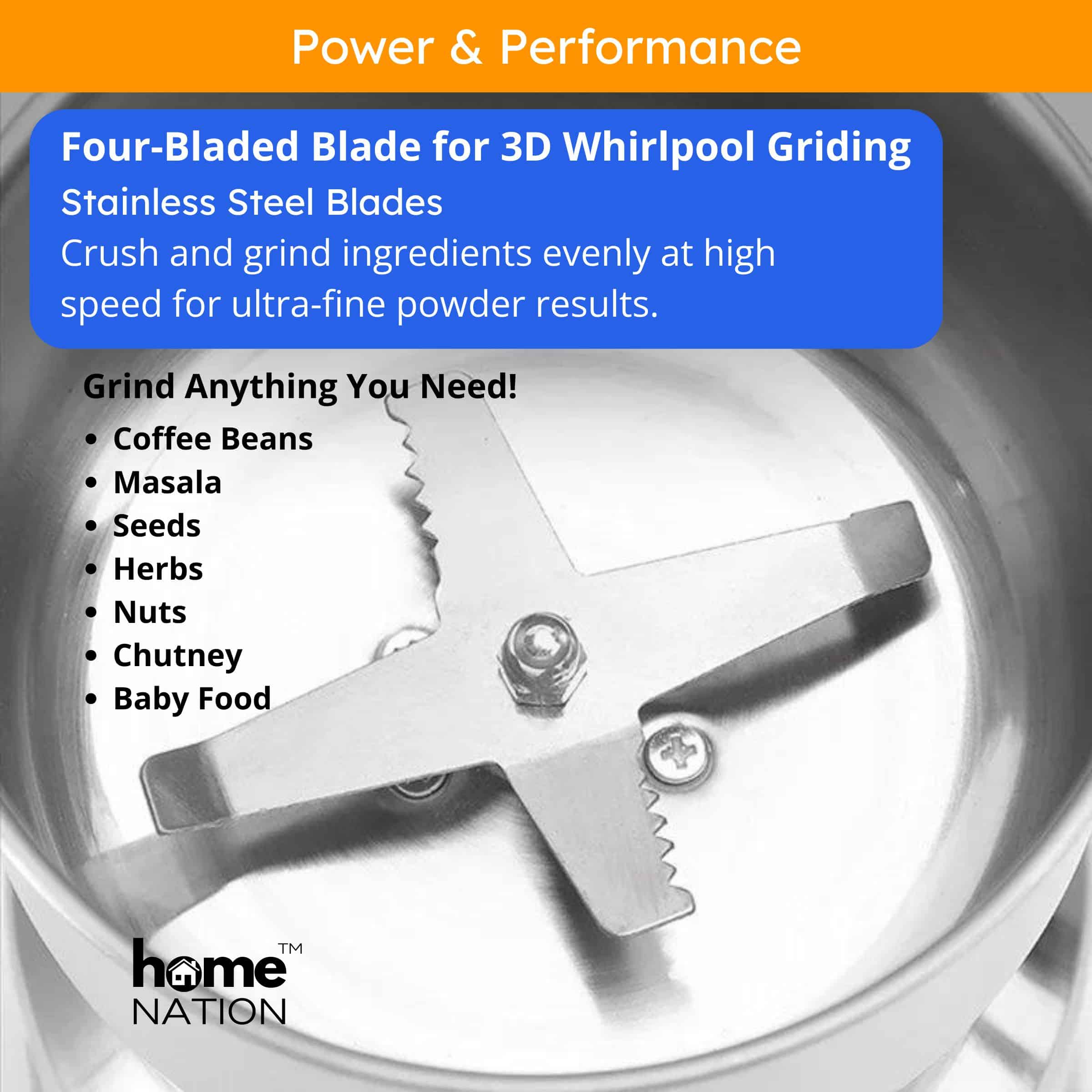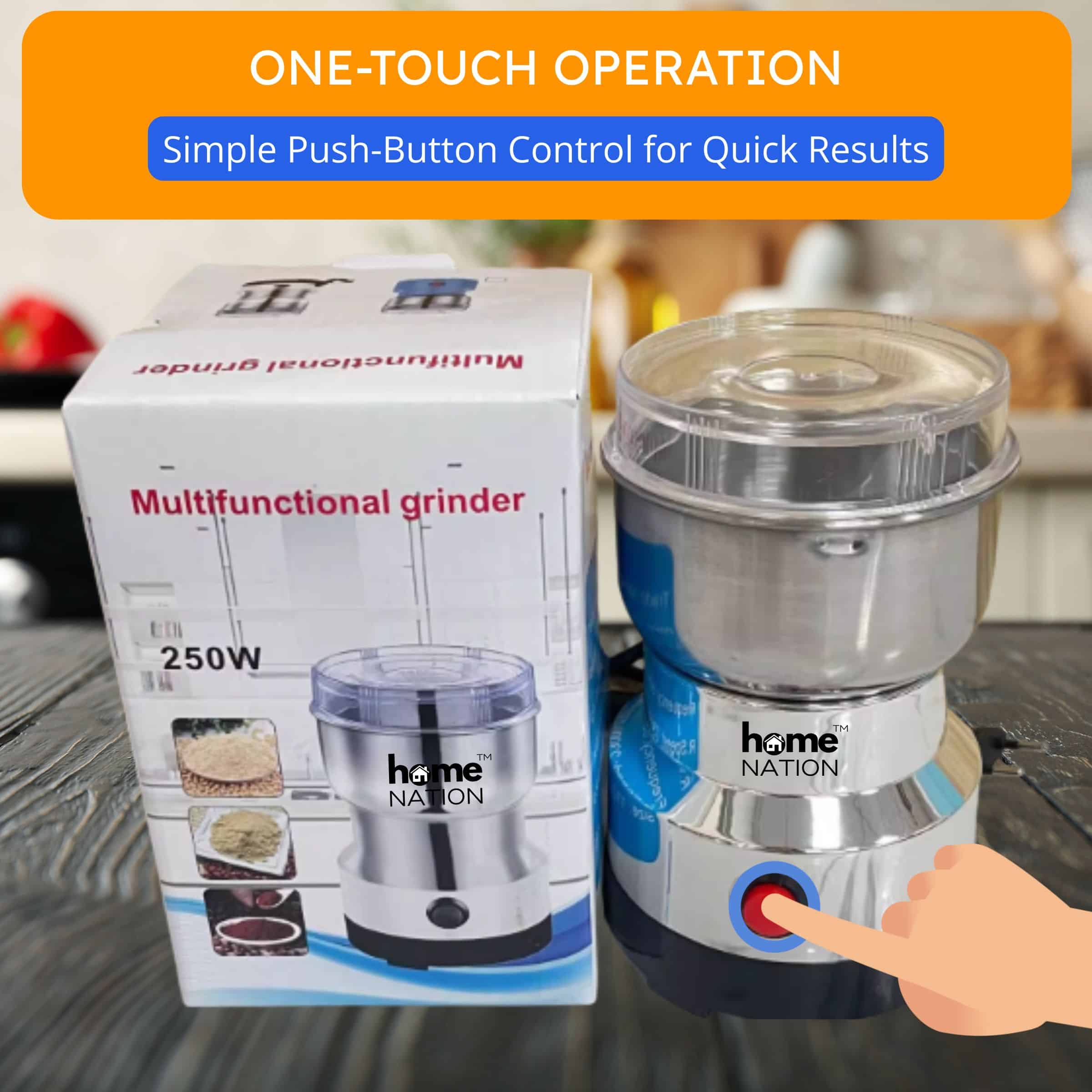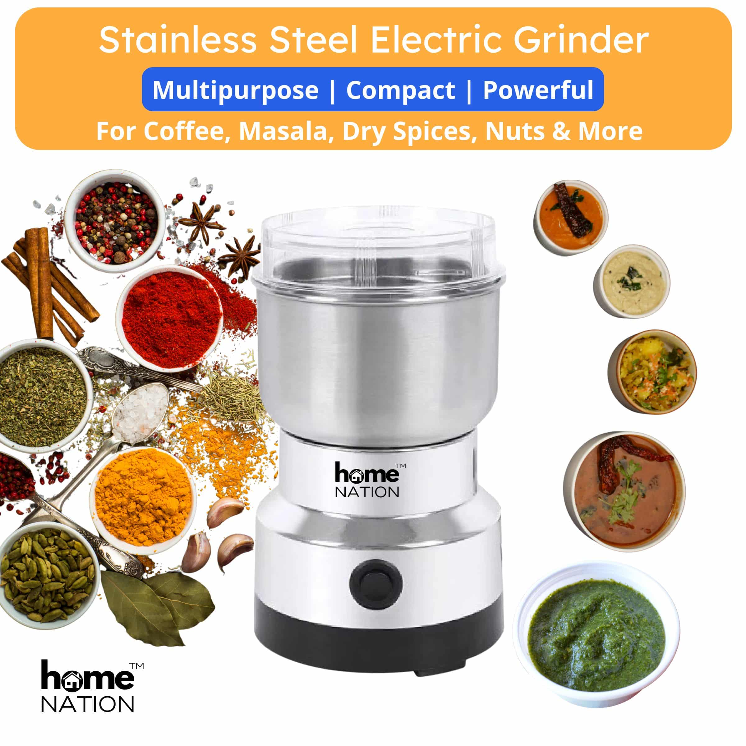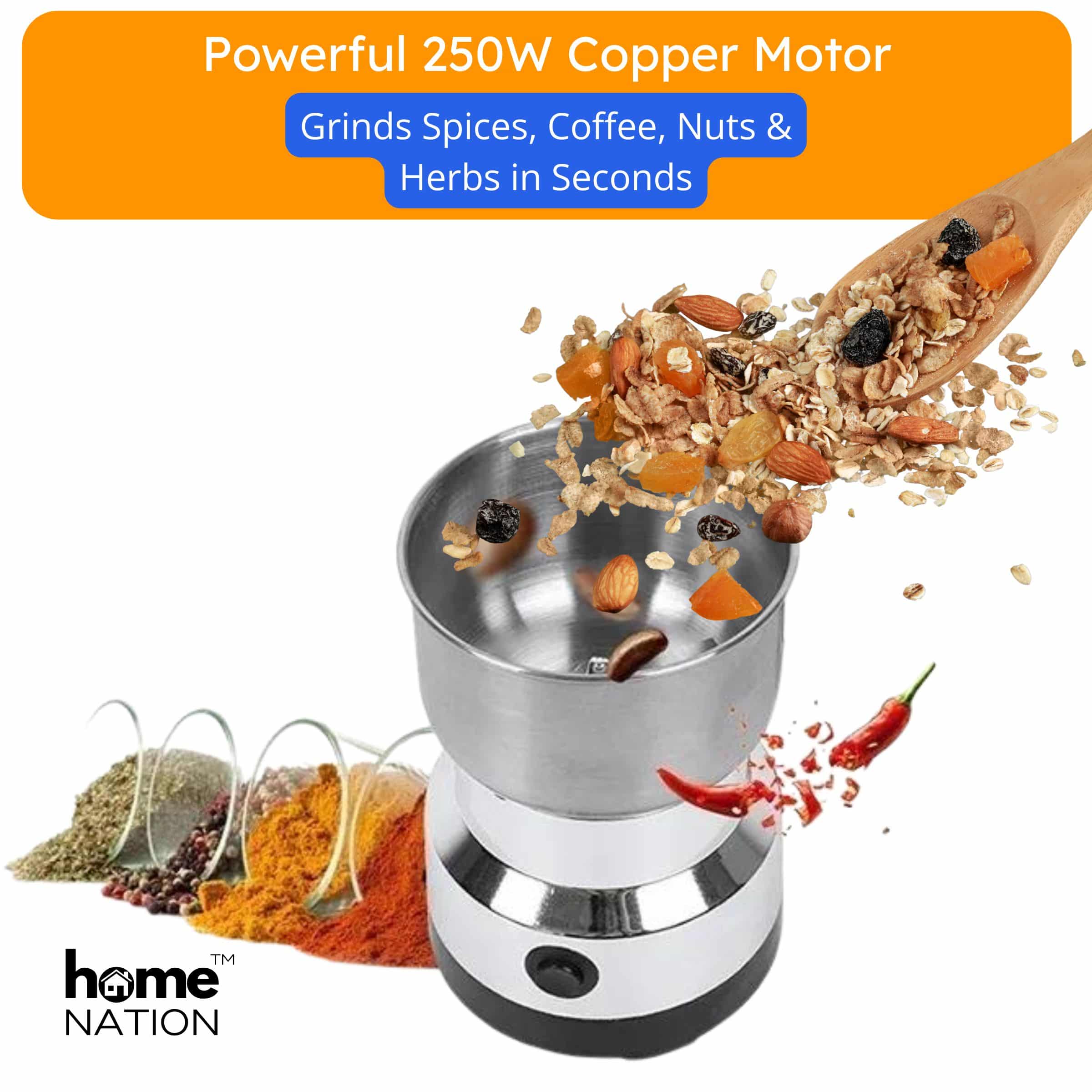 Home Nation 250W Stainless Steel Electric Grinder – Multipurpose Coffee, Masala & Spice Grinder Machine