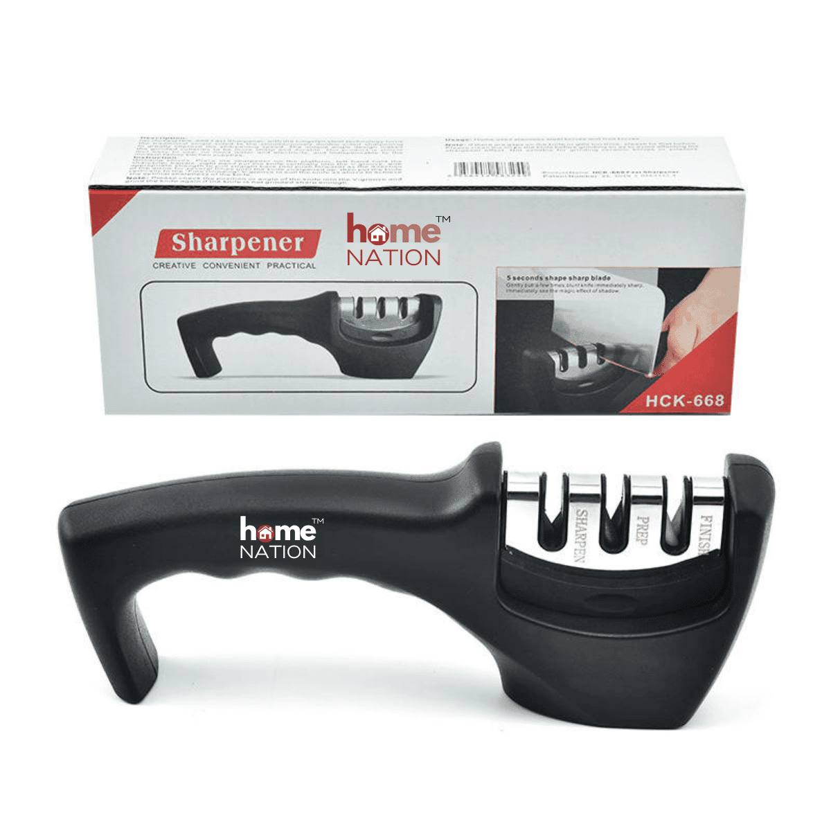Keep your kitchen knives sharp and ready with this 3 stage knife sharpener made for daily home use. If your knives feel dull and slow, this kitchen knife sharpener helps restore sharp edges quickly and safely. It is a simple manual knife sharpener that improves cutting performance and saves time while cooking. You do not need any special skills or electric machine to use it. This sharpening tool is designed for easy use in every home kitchen.