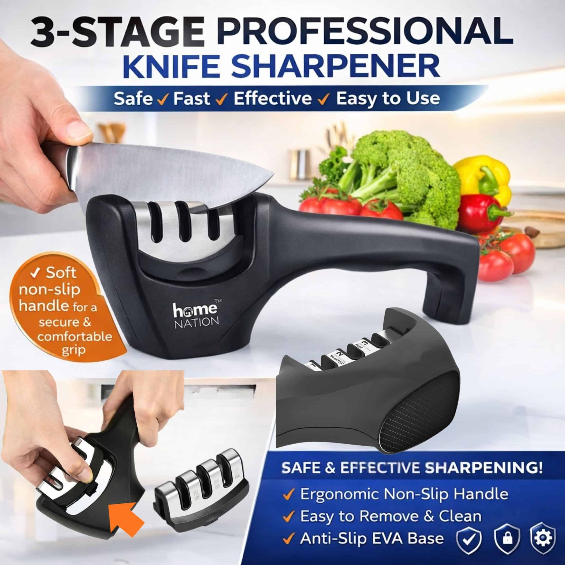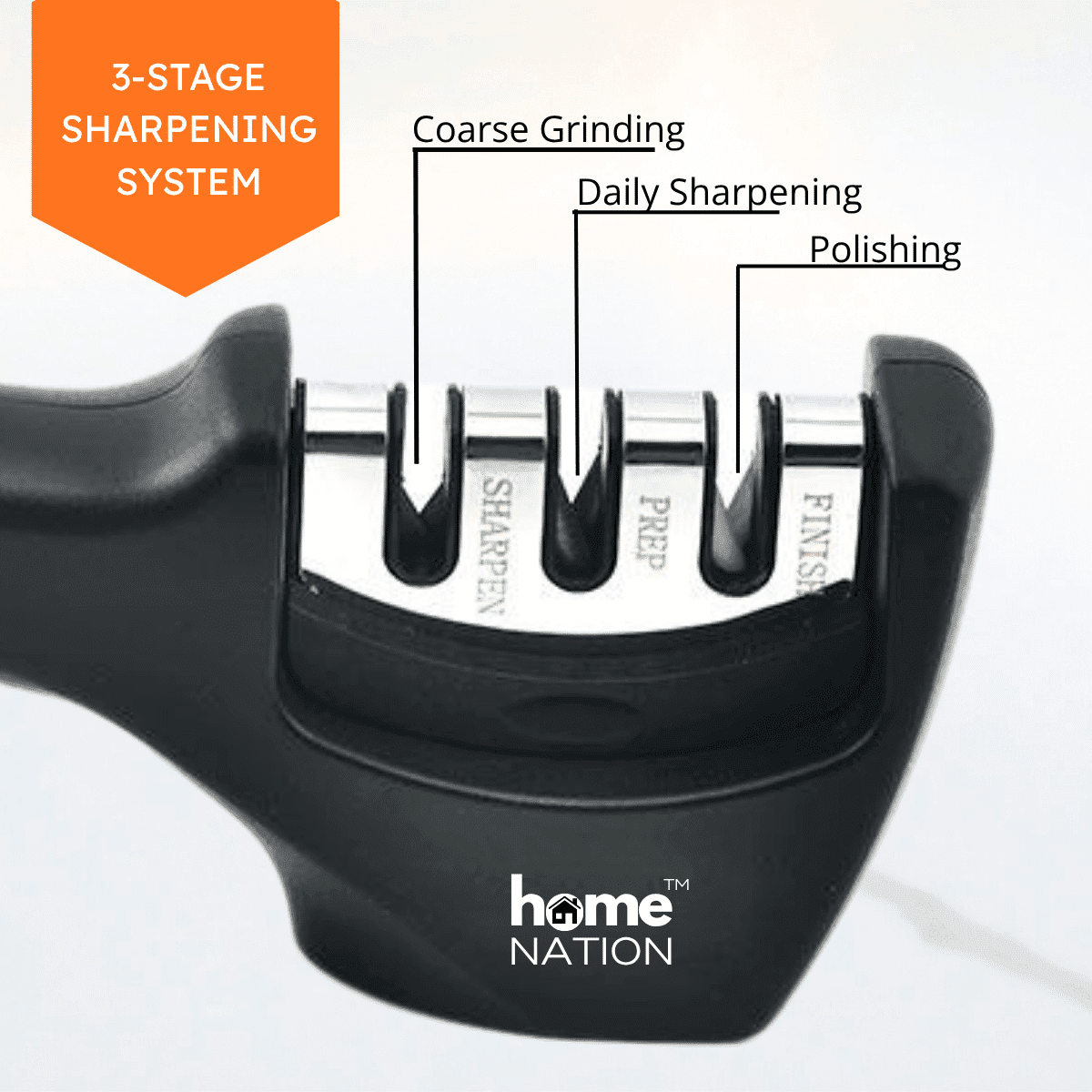 3 Stage Knife Sharpener for Kitchen: Repair, sharpen, and polish dull blades with an easy manual sharpening system for daily home use.
