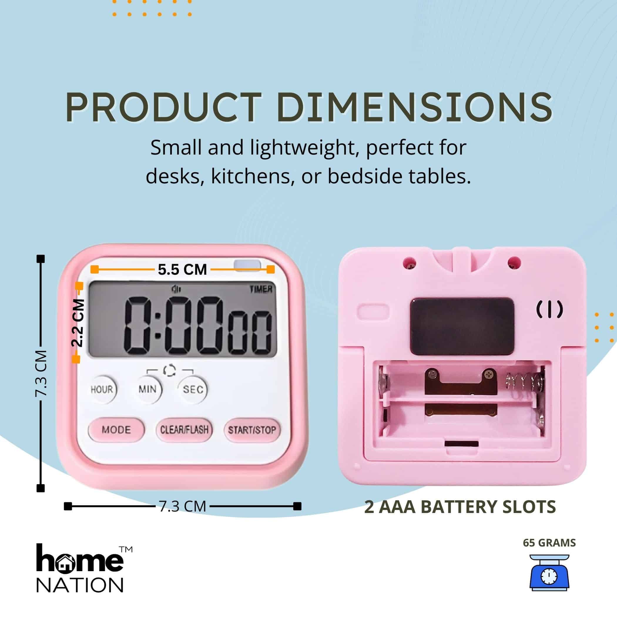 - Countdown and stopwatch modes for cooking, study, exercise, and office use