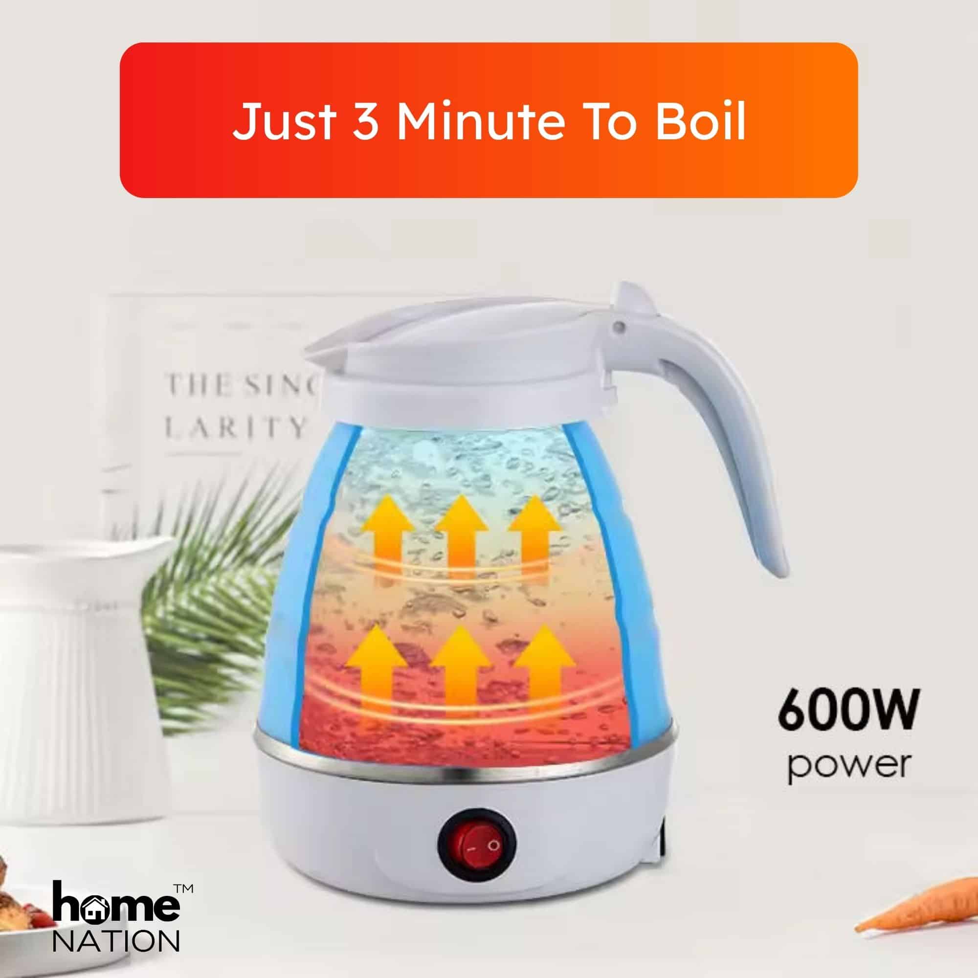 Foldable Electric Kettle 600 ML | Portable Travel Kettle | Fast Boil, Food Grade Silicone, Auto Shut-Off, Boil Dry Protection | Multicolor