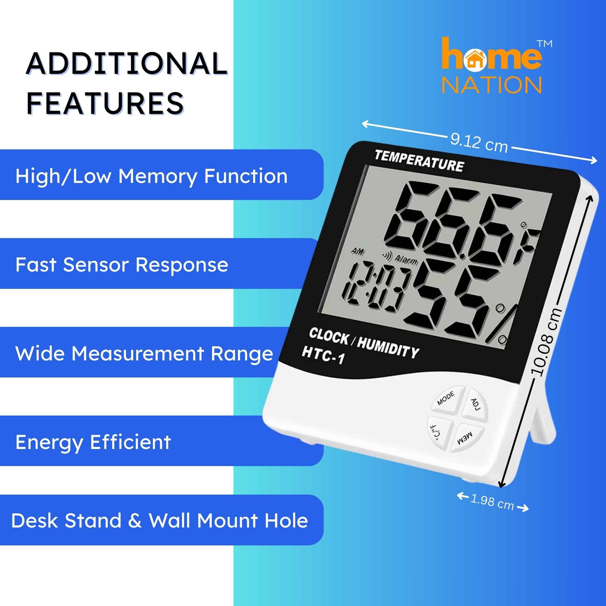 HTC-1 Digital Temperature & Humidity Meter | Indoor Room Thermometer Hygrometer with LCD Display, Clock, Alarm & Max-Min Memory
