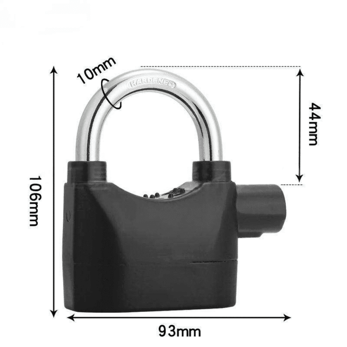 Made from high-quality aluminum alloy, this waterproof alarm lock is corrosion-resistant and built to withstand outdoor conditions. Its thickened shackle and rugged body make it perfect for long-term use on bikes, gates, garages, and containers.