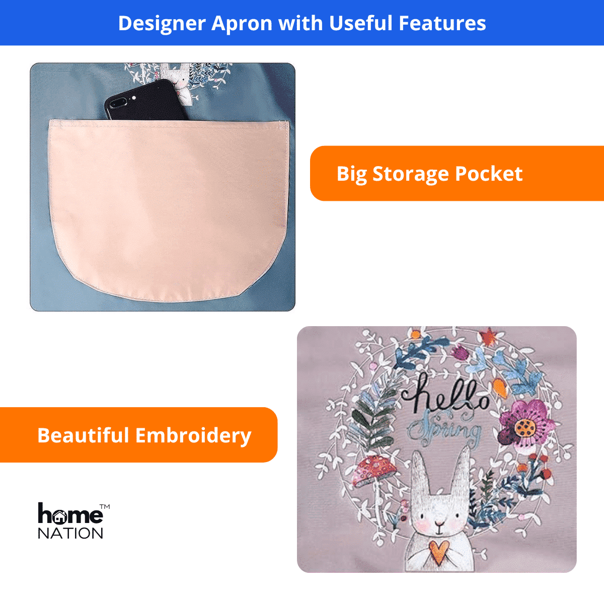 Large Center Pocket: Convenient pocket in the middle for holding kitchen tools, spoons, phones, or recipes.